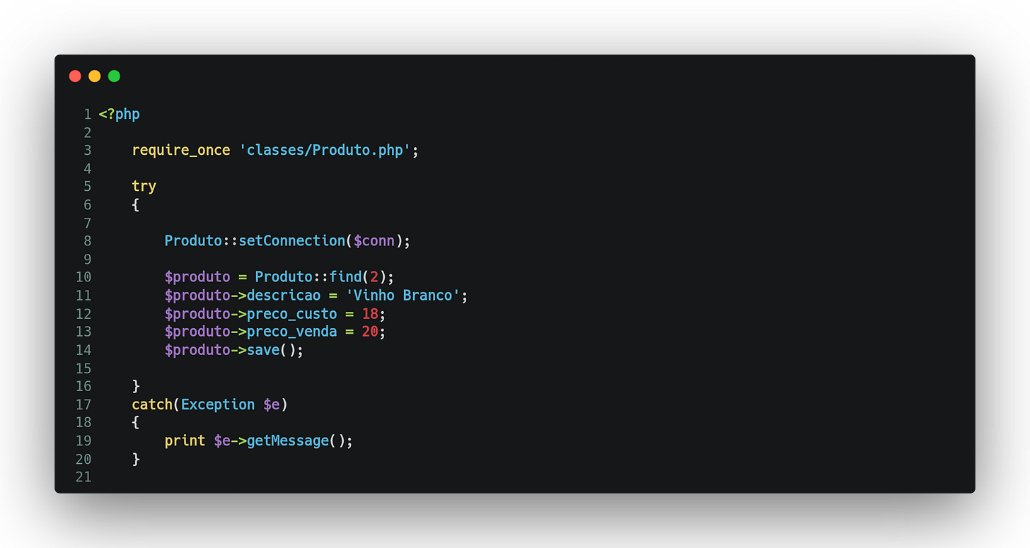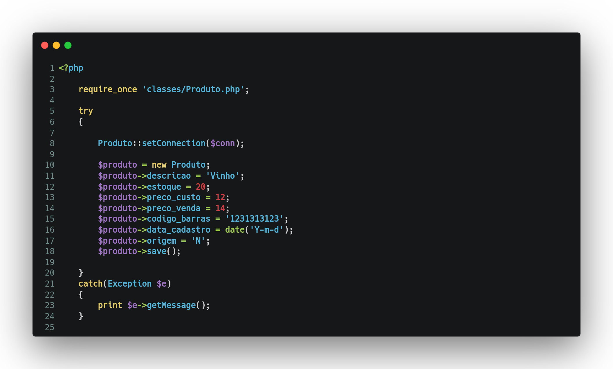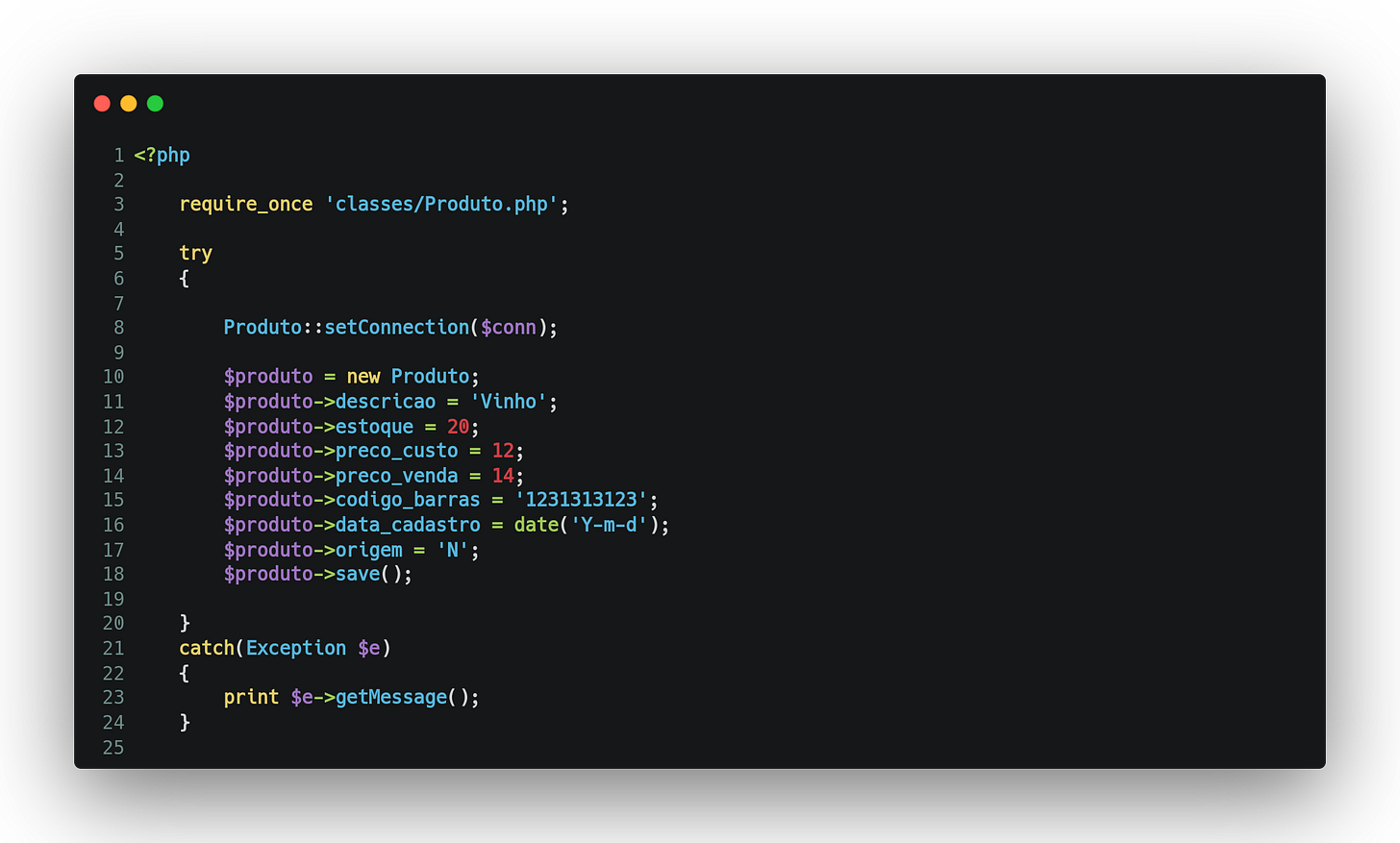 INSERT INTO produto (descricao, estoque, preco_custo, preco_venda, codigo_barras, data_cadastro, origem) VALUES ('Vinho',20,12,14,1231313123, '2023-08-25','N')Alterando informação de um dados já existente