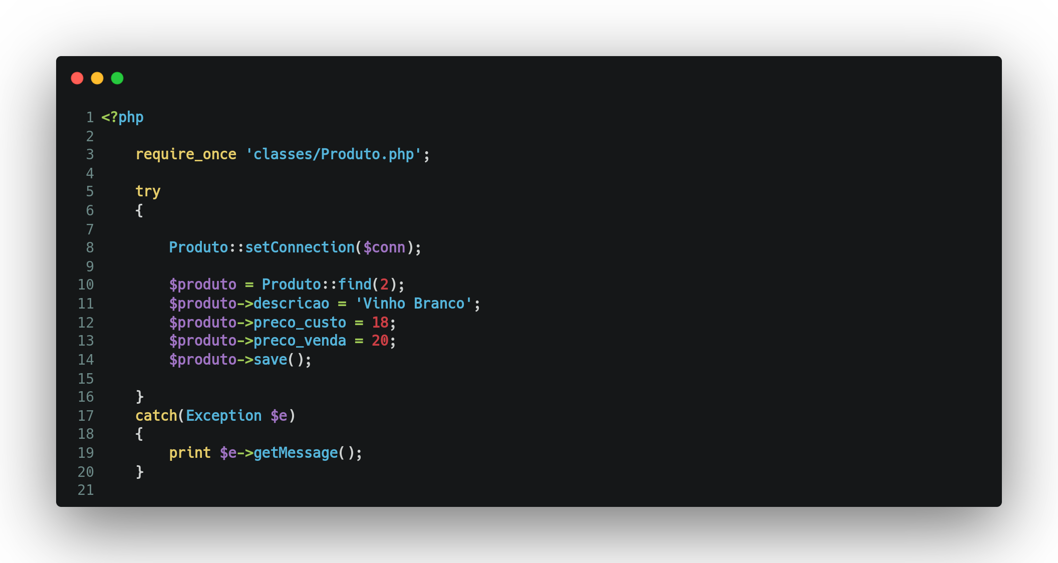 Active Record é um padrão de projeto que trabalha com a técnica ORM (Object Relational Mapper).